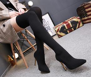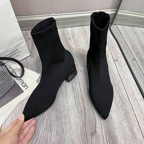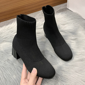 2020秋冬新款韩版马丁靴女套筒毛线靴细跟弹力袜靴...