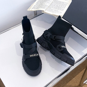 弹力袜子靴女2021年秋季新款百搭透气休闲运动鞋针...