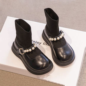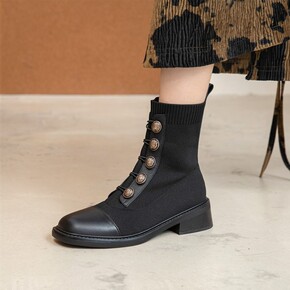 瘦瘦靴女英伦风针织弹力袜靴显瘦短靴2021超纤皮新...