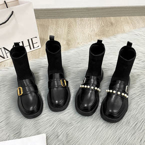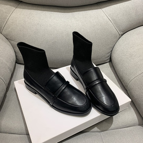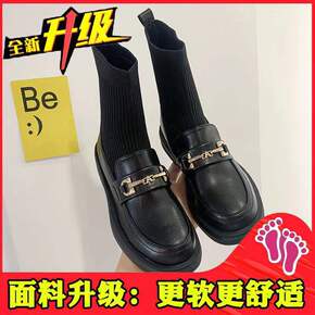 英伦风瘦瘦靴女年春秋季单靴弹力袜靴马丁靴小皮鞋袜子...