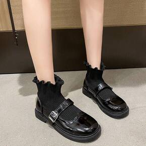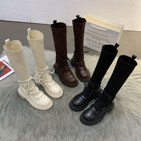 蓝依凝皮小皮鞋瘦腿弹力袜靴女2022春季新款厚底松...
