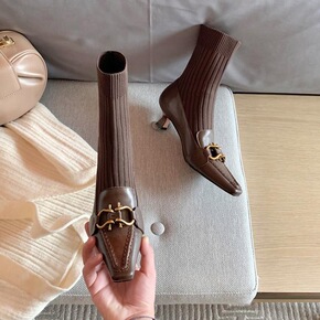 ins网红瘦瘦靴女批发秋冬方头粗跟弹力袜靴中跟短靴...