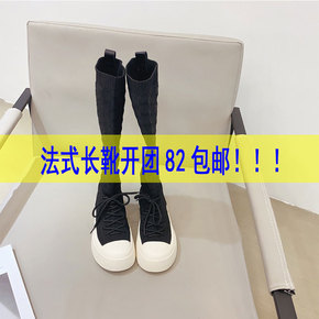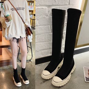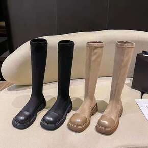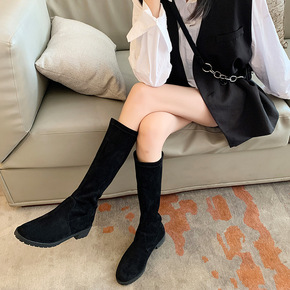 长筒靴女2021秋冬新款百搭不过膝松紧弹力靴松糕厚...