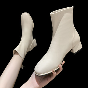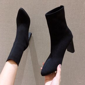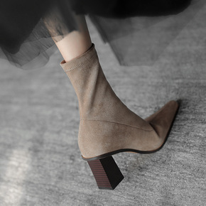 性感高跟鞋显瘦弹力靴2021秋冬ins潮粗跟短靴子...