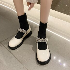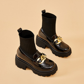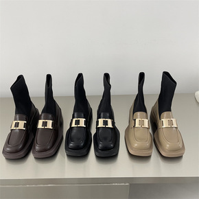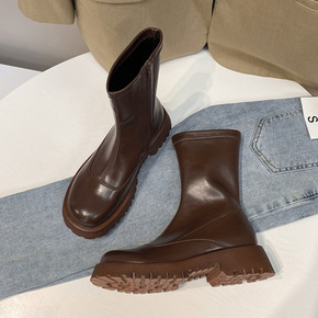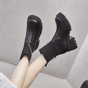 2021秋季新款厚底切尔西靴短靴弹力靴增高时尚女靴...
