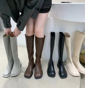 小个子长筒靴女粗跟2020新款秋冬高跟不过膝靴方头...