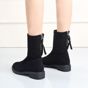 磨砂靴子女 中筒靴大码女鞋短靴秋冬百搭马丁靴加绒弹...