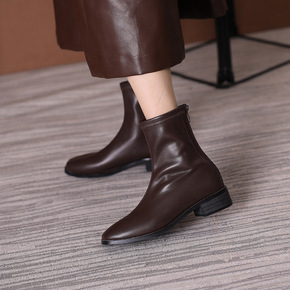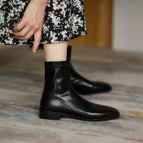 鹿与奈良气质真皮瘦瘦弹力靴百搭侧拉链短靴女马丁靴子...