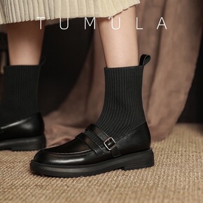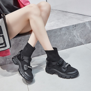 米薇卡厚底袜靴女2021新款春秋单靴弹力针织短靴i...