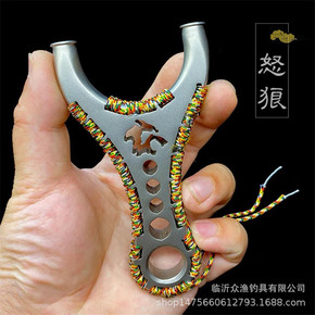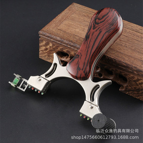 弹弓合金贪狼扁皮快压户外竞技带灯激光树脂铁片仿木纹...