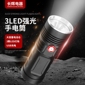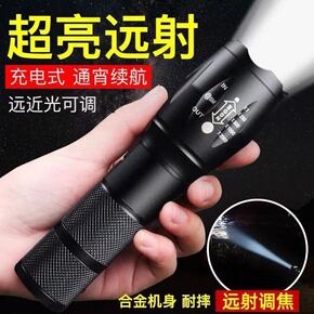 强光灯手电筒充电超亮远射户外迷你小型便携耐家用le...