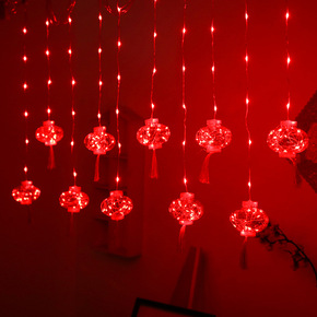 led过年春节新年红灯笼装饰灯铜线窗帘灯元宵喜庆橱...