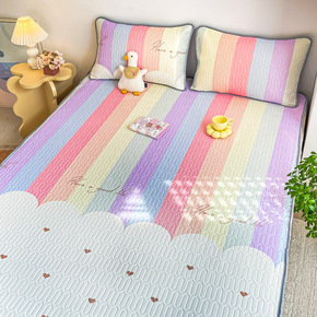夏季新品大版卡通数码印花床上乳胶凉席三件套冰丝软席...