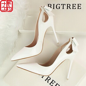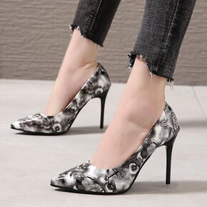 外贸大码女鞋2019尖头高跟鞋豹纹绒面细跟超高跟浅...