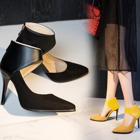 跨境 网红同款时尚绑带凉靴女 镂空尖头细跟高跟单鞋...
