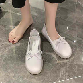 2021年蝴蝶结透气平底新款牛筋软底工作鞋单鞋夏季...