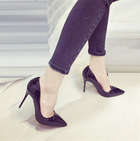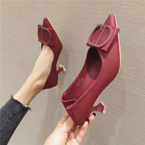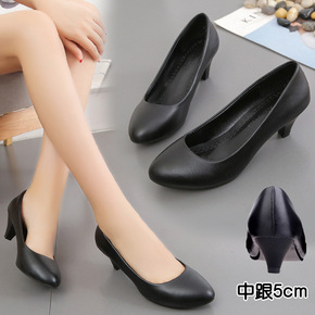 2021春黑色职业秋季新款酒杯跟细跟尖头单鞋女正装...