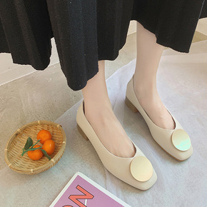 单鞋女浅口2019新款夏季温柔风港味复古一脚蹬中粗...