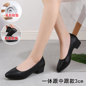 高跟鞋跟正装职业鞋粗秋季鞋一体2021跟单通勤百搭...