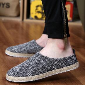 帆布男鞋春季透气薄款男士百搭平板鞋休闲布鞋一脚蹬半...