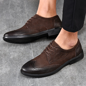 2022春新款复古质感套脚通勤商务牛皮革男正装皮鞋...