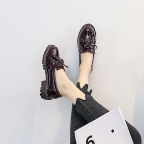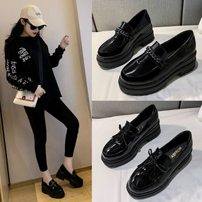 ins小皮鞋女2021春季厚底松糕单鞋圆头英伦风韩...