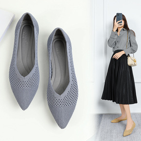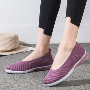 跨境新款飞织鞋 软底休闲女单鞋时尚妈妈鞋 浅口平底...