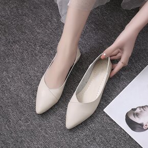 尖头单鞋女2020春季新款韩版平底平跟浅口女鞋低跟...