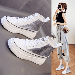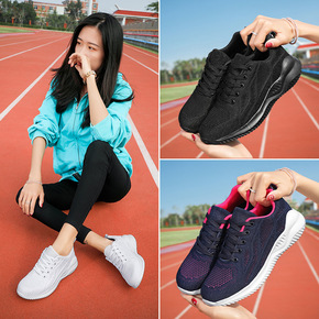 运动单鞋女2021春夏新款韩版松糕底学生休闲透气跑...