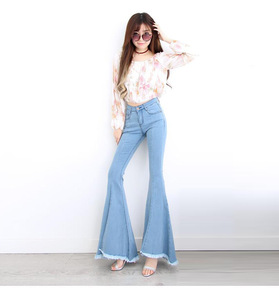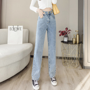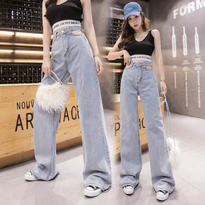 微喇叭牛仔裤女2021春季新款高腰裤子宽松韩版复古...