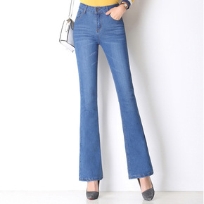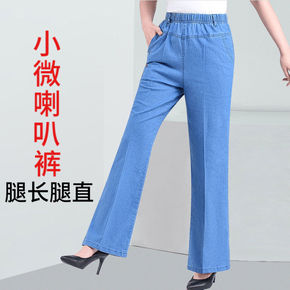 女士喇叭低腰牛仔裤 修身显瘦阔腿牛仔裤长裤...
