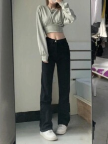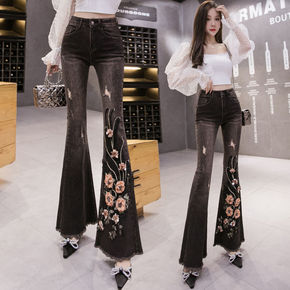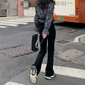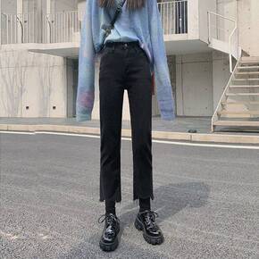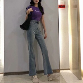 2021秋款新款韩版高腰牛仔裤女修身显瘦微喇叭休闲...