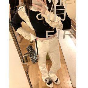 实拍欧美2021春季重工高腰显瘦喇叭裤长裤女钉珠烫...