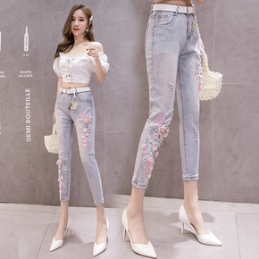 厂家欧美独立站热销女士牛仔裤刺绣修身显瘦长裤女士牛...