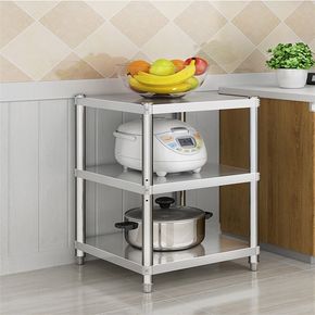 厨房不锈钢置物架落地多功能3层 放锅架微波炉收纳架...