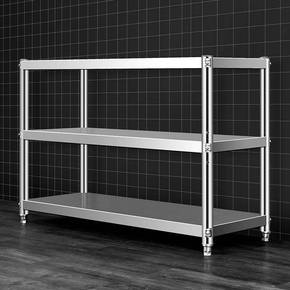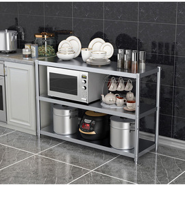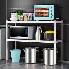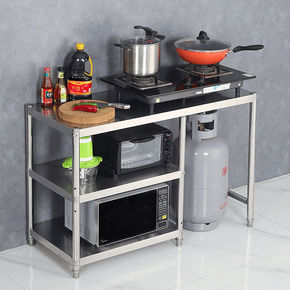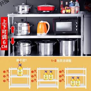 厨房收纳置物架不锈钢3两层收纳架放锅2家用落地微波...