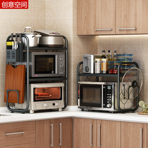 锅收纳厨房置物架落地多层微波炉烤箱储物货架架锅具收...