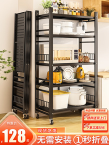 厨房折叠置物架落地多功能免安装收纳储物架微波炉烤箱...