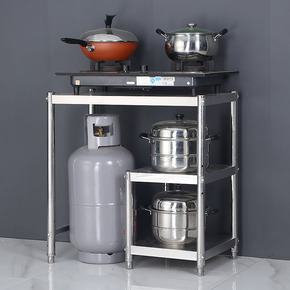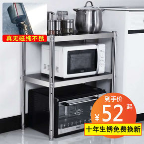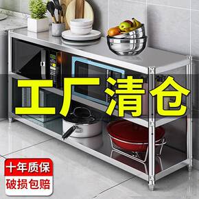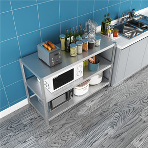 厨房收纳置物架落地多层储物架微波炉台面不锈钢锅架子...