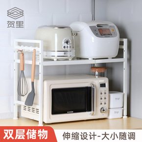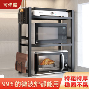 可伸缩微波炉置物架双层烤箱架子厨房落地家用收纳架台...
