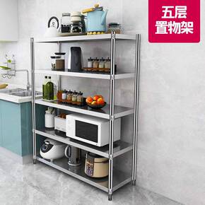 货架家用不锈钢厨房置物架子多层落地微波炉架收纳架锅...