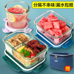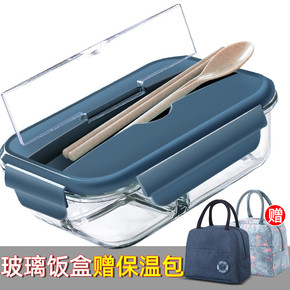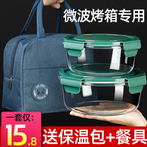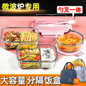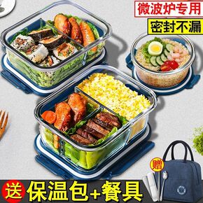 带饭午餐保温便当餐盒可微波炉加热玻璃保鲜饭盒分隔型...