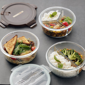 圆形耐热玻璃分格饭盒微波炉保鲜盒装汤盒密封碗带盖便...