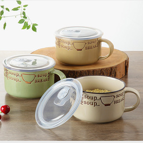 便当盒饭盒泡面碗可微波炉加热陶瓷碗带盖大号方便面碗...