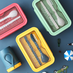 小麦纤维日式学生饭盒便携分格便当盒可微波炉保鲜盒带...