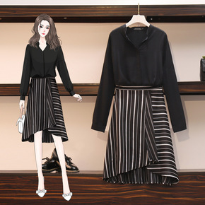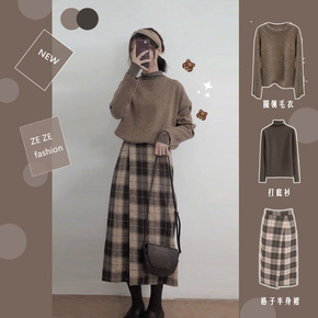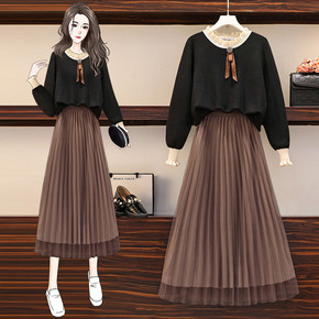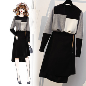 实拍 网红毛衣秋冬新款微胖洋气针织毛衣套装裙显瘦减...