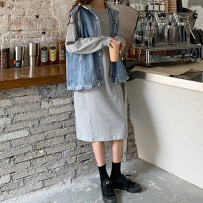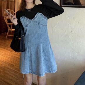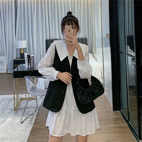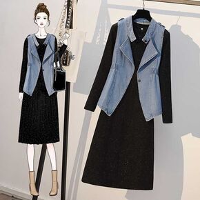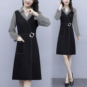 2020大码女装秋季洋气遮肚马甲上衣减龄连衣裙微胖...
