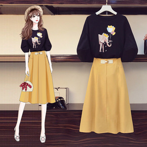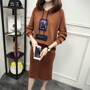 秋装新款孕妇时髦减龄显瘦毛衣连衣裙微胖洋气两件套装...