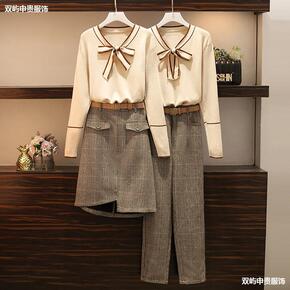 大腿大码微胖适合减龄显瘦的粗洋气复古胯秋冬季两件套...