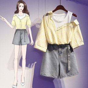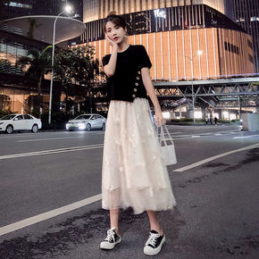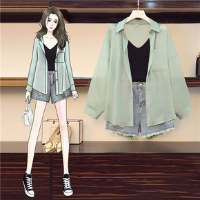 2021秋季新款大码女装微胖套装夏显瘦网红穿搭网纱...
